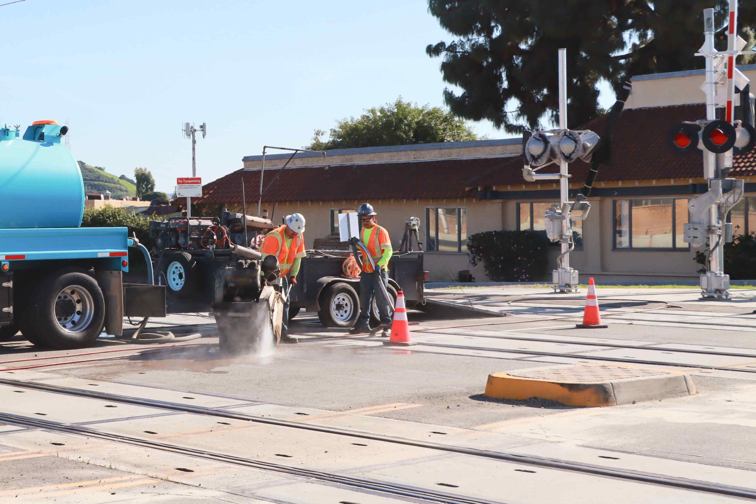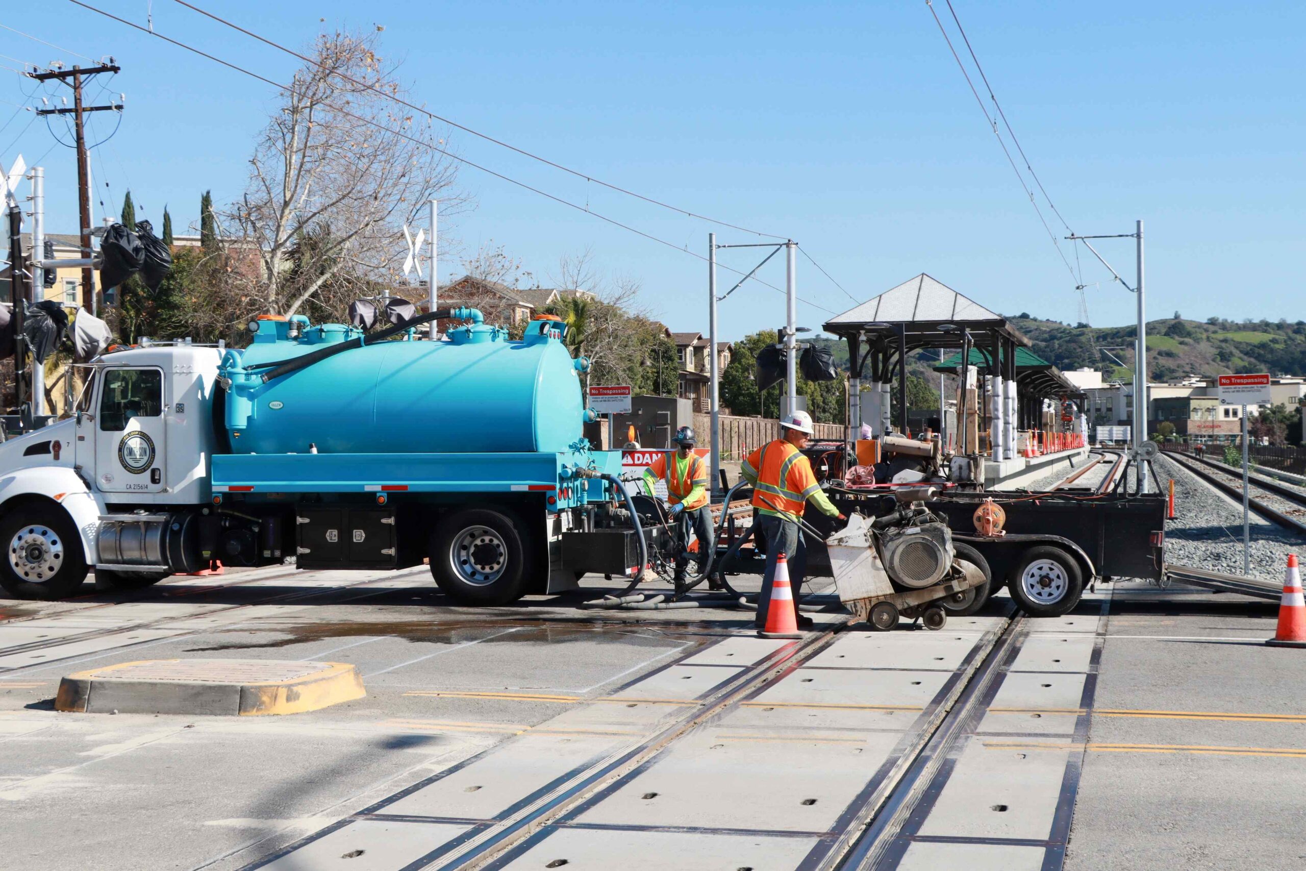 Crews are installing vehicle detection loops as part of the safety upgrades at all 21 at-grade crossings. If the loops detect a vehicle in the crossing, it will prevent the exit crossing gates from lowering to allow the vehicle to safely leave the grade crossing, and also change the motorman signal to let the light rail train operator know when it is safe to proceed.