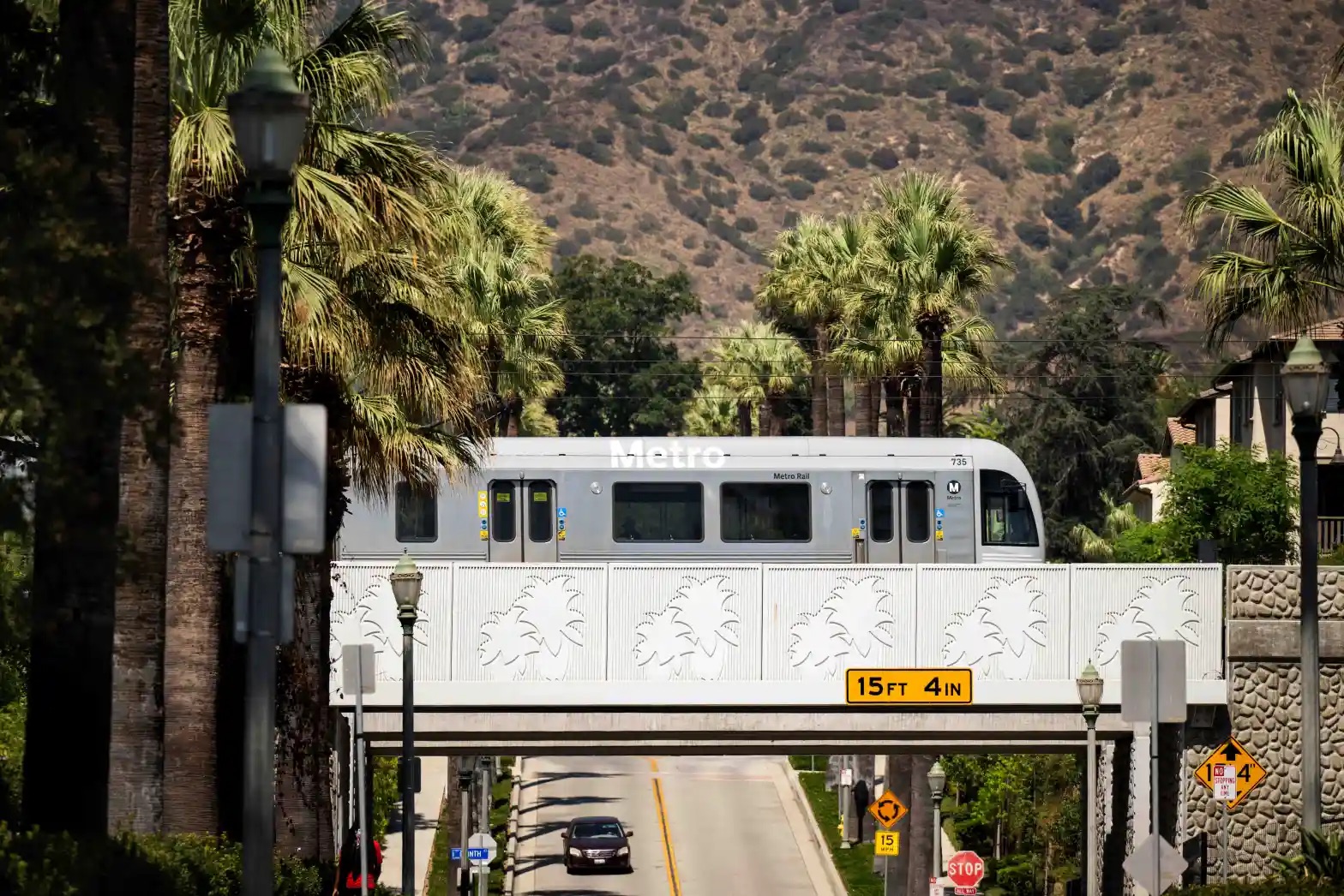 An eastbound Metro A Line train runs through Azusa on Monday, Sept. 15, 2025. The light rail line’s Azusa to Pomona extension opens on Friday. (Photo by Sarah Reingewirtz, Los Angeles Daily News/SCNG)